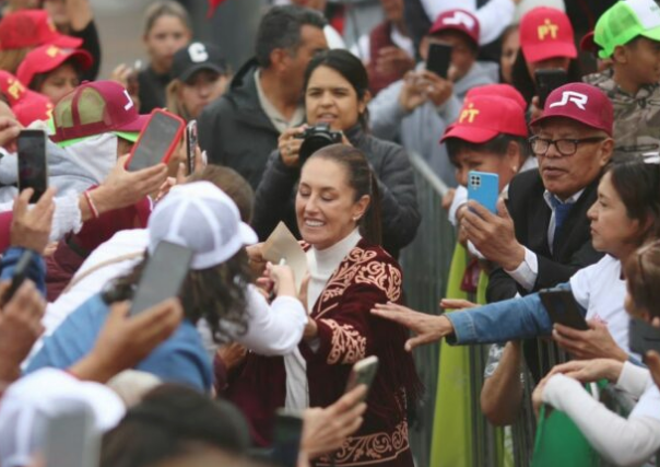 “Aquí le decimos a los del otro lado de la frontera, Estados Unidos, a su gobierno, quien vaya a quedar en su elección, nosotros siempre vamos a defender una relación de iguales, nunca de sometimiento a los Estados Unidos y en defensa de las mexicanas y de los mexicanos al otro lado de la frontera”, sostuvo la candidata.