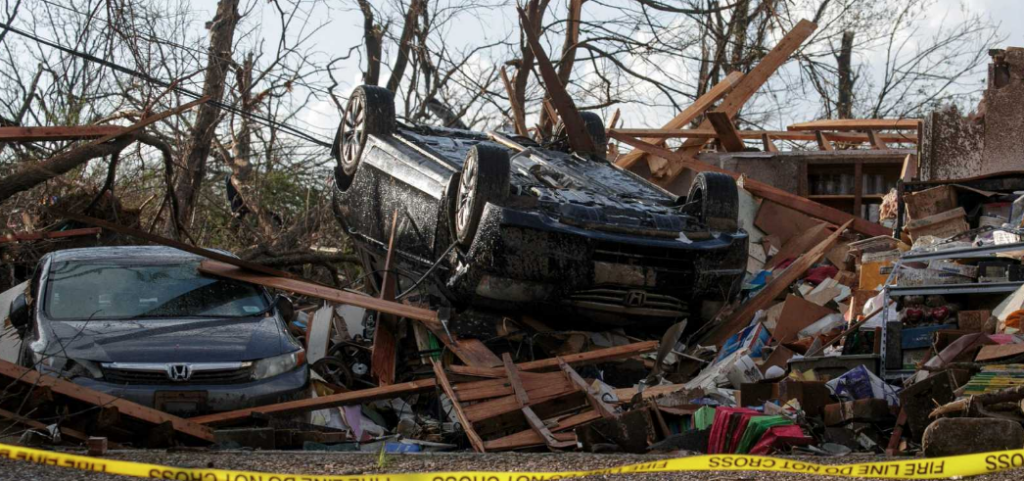 01 de abril del 2023.- Al menos 21 personas han muerto por los fuertes tornados que han azotado en las últimas horas el medio oeste y sur de Estados Unidos, dejando a miles de personas sin electricidad y hasta provocando el colapso del tejado de un teatro donde unas 260 personas asistían a un concierto de heavy metal.