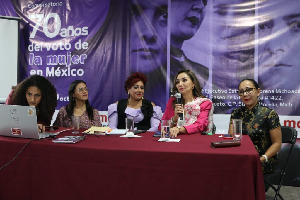 En el conversatorio 70 años del voto de la mujer en México organizado por Mireya Aguilar González, Secretaria de Mujeres, de Morena la Magistrada explicó que el protocolo para juzgar con “Lentes violeta” requiere de detectar relaciones asimétricas de poder entre los géneros que pueden producir discriminación; cuestionar los hechos y valorar las pruebas sin prejuicios o estereotipos de género para advertir las desventajas; evaluar el impacto diferenciado para dictar una resolución justa acorde al contexto de desigualdad por el género; aplicar estándares de derechos humanos y usar lenguaje incluyente.