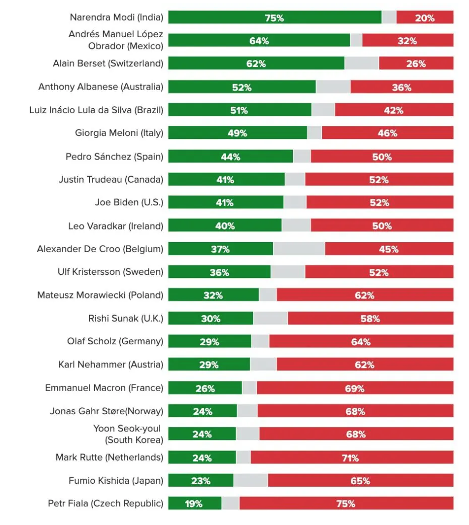 CDMX, 03 de agosto del 2023.- El presidente Andrés Manuel López Obrador se encuentra en el “top” de mandatarios con más apoyo a nivel global.