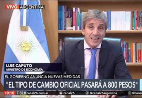 “Nuestra misión es evitar esa catástrofe”, aseguró Caputo. Entre los principales puntos, habló de un “sinceramiento” del tipo de cambio, con lo que el dólar oficial pasará a cotizar en $ 800.