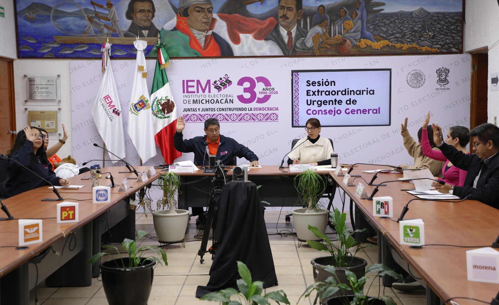 Morelia, Michoacán, 14 de noviembre de 2025. En sesión extraordinaria, el Consejo General del Instituto Electoral de Michoacán (IEM) aprobó, a propuesta de la Comisión de Vinculación y Servicio Profesional Electoral, los dictámenes para el otorgamiento de incentivos por rendimiento 2025 y por obtención de grado académico, ambos correspondientes al ejercicio valorado 2024, al personal integrante del Servicio Profesional Electoral Nacional (SPEN) adscrito al Instituto.