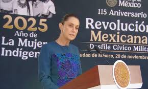 CDMX, 20 de noviembre del 2025.- Tras equiparar al porfirismo con la ultraderecha de ahora, la presidenta Claudia Sheinbaum dijo, durante el discurso inaugural del desfile conmemorativo de la Revolución Mexicana, que “México no volverá a caminar hacia atrás. La paz y la tranquilidad son fruto de la justicia. Por ello no tienen resonancia los discursos que normalizan la violencia como camino, que glorifican la imposición o que pretenden restaurar un país de privilegios para unos cuantos. El que convoca a la violencia se equivoca; el que alienta el odio, se equivoca; el que cree que la fuerza sustituye a la justicia, se equivoca”.