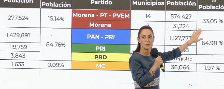 Según dijo en su conferencia de prensa matutina, los datos preliminares muestran que, aunque se redujo el número de municipios gobernados en algunos casos, la coalición ampliará su presencia en términos de población.