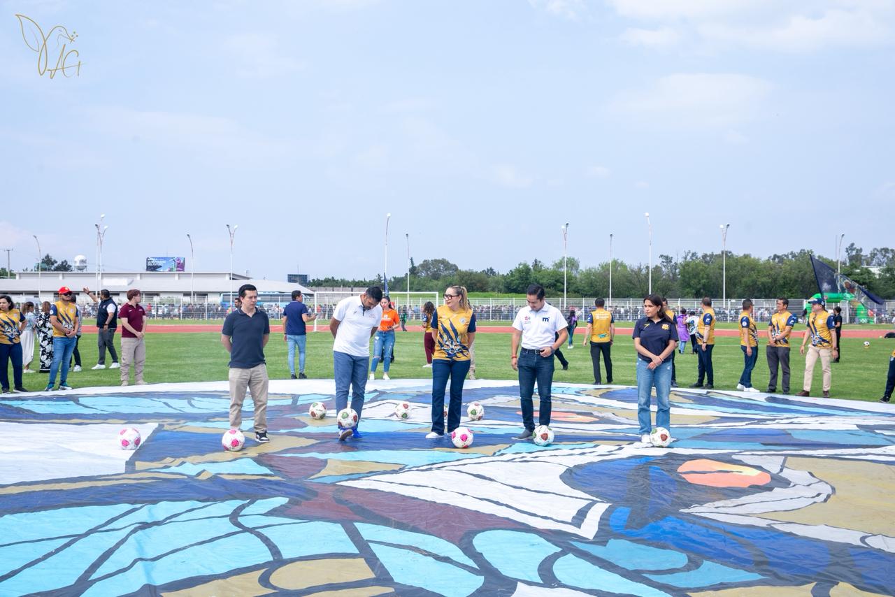 La rectora Yarabí Ávila González fue la encargada de inaugurar las acciones con la tradicional patada inicial del encuentro que se desarrolló en el Estadio Universitario en un ambiente de gran ánimo entre la afición que apoyó a las alumnas nicolaitas.