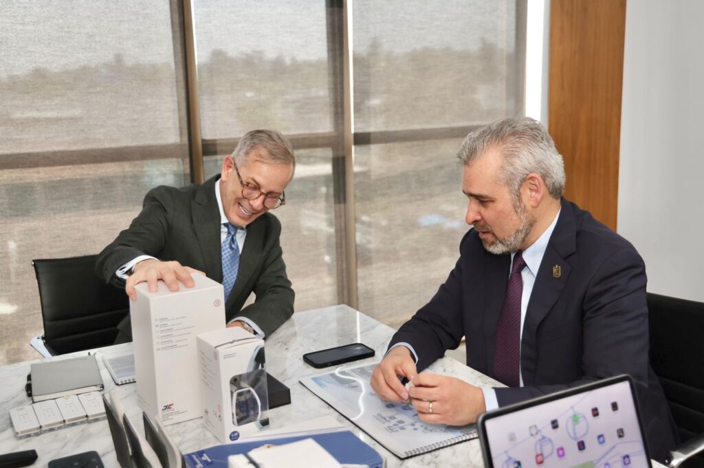 En este encuentro, donde también participaron los secretarios de Desarrollo Urbano y Movilidad, Gladyz Butanda Macías, y de Comunicaciones y Obras Públicas, Rogelio Zarazúa Sánchez, se presentó al mandatario estatal esquemas de inversión, infraestructura y diseños del sistema electromecánico que ofrece la empresa austriaca para modernizar el transporte público del municipio.