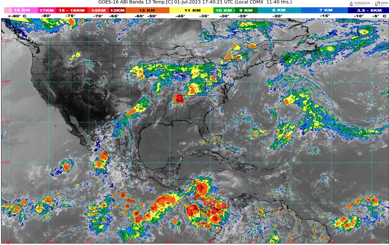 CDMX, 01 de julio del 2023.- Para hoy sábado, la tormenta tropical “Beatriz” mantendrá su desplazamiento muy cerca de la costa de Jalisco. Sus bandas nubosas se extenderán hacia el occidente del territorio nacional, propiciando lluvias puntuales intensas en Nayarit, Jalisco y Colima, además de vientos con rachas de 60 a 80 km/h y oleaje elevado de 1 a 4 metros de altura en las costas de dichos estados.