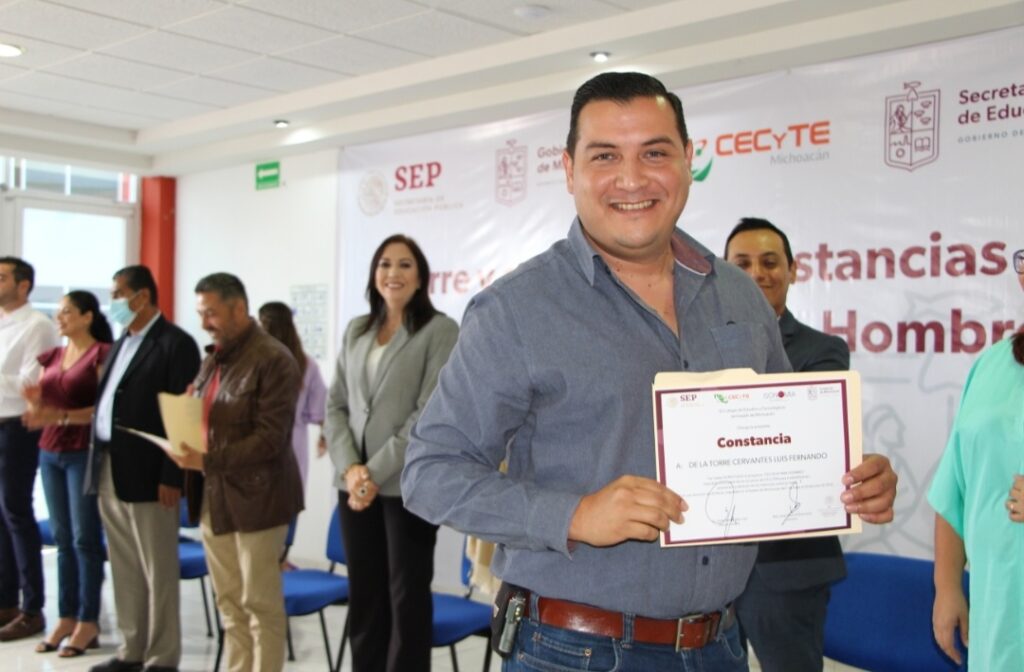 Morelia, Michoacán, 28 de septiembre del 2022.- En atención a los principios de transversalidad como la inclusión e igualdad sustantiva del Gobierno de Michoacán, en este primer año de gobierno, el Colegio de Estudios Científicos y Tecnológicos del Estado de Michoacán (Cecytem) realizó el taller “Escuela para Hombres”, de donde egresó la primera generación.