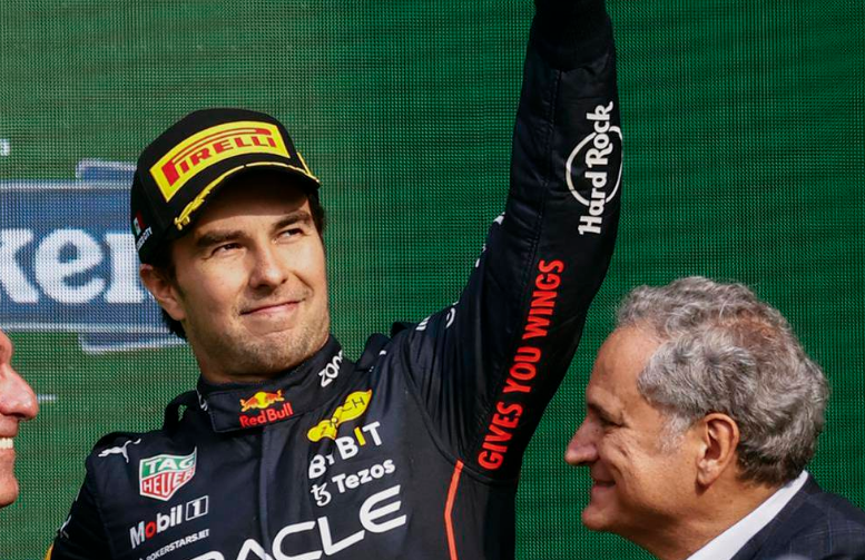 CDMX, 30 de octubre del 2022.- Sergio Checo Pérez quedó cerca de conseguir la primera victoria de un mexicano en Fórmula 1 ante la gran afición en el autódromo Hermanos Rodríguez, pero volvió a subir al podio en tercer lugar y ascendió al segundo lugar provisional del campeonato, el que ya posee su coequipero Max Verstappen, el holandés que se llevó la bandera a cuadros.