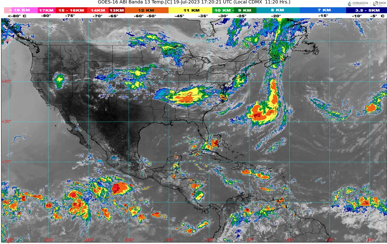 CDMX, 19 de julio del 2023.- Durante este día miércoles, el monzón mexicano se mantendrá sobre el noroeste de México, originando chubascos y lluvias fuertes en Chihuahua, Sinaloa y Durango, además de lluvias puntuales muy fuertes en Sonora.