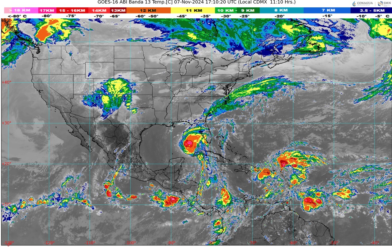 A su vez, el huracán Rafael se desplazará sobre el oriente del golfo de México, su circulación, ocasionará chubascos y lluvias fuertes, además de viento de componente norte con rachas de 40 a 60 km/h en la península de Yucatán.