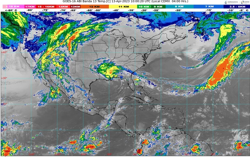 CDMX, 27 de abril del 2023.- Este día jueves, el frente frío núm. 51 se localizará sobre el noreste del país, interaccionará con un canal de baja presión que se establecerá sobre el oriente de México y con la corriente en chorro subtropical, originando lluvias y chubascos en el noreste, oriente y centro del territorio nacional, además de lluvias puntuales fuertes en Nuevo León, Tamaulipas, San Luis Potosí, Puebla y Veracruz.
