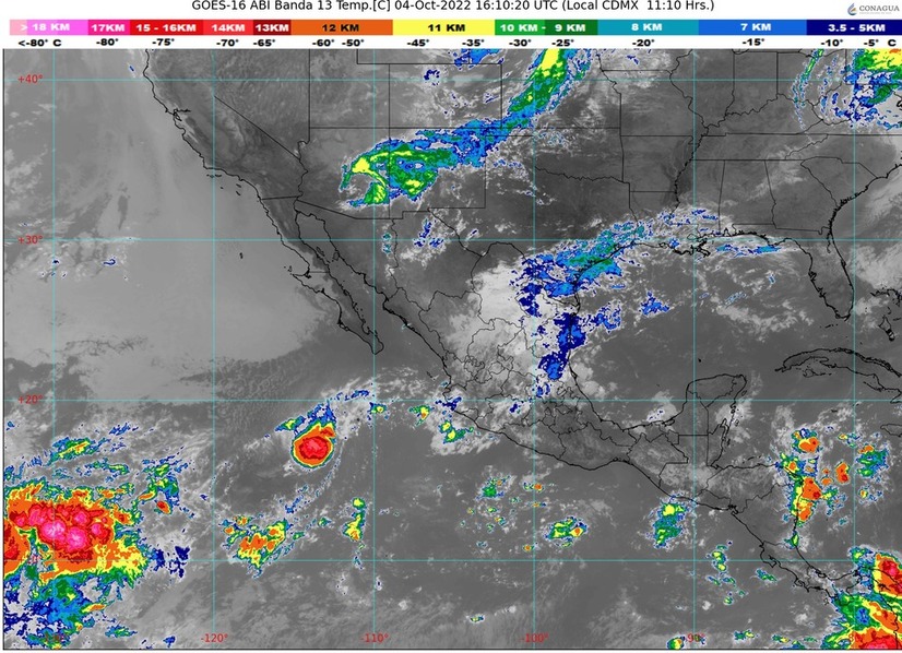 CDMX, 04 de octubre del 2022.- Para hoy martes, un canal de baja presión sobre el noroeste, norte y occidente del país, en interacción con la humedad remanente de “Orlene”, la corriente en chorro subtropical e inestabilidad en niveles altos de la atmósfera, originarán lluvias puntuales muy fuertes sobre Sinaloa, Colima, Nayarit, Aguascalientes, Guanajuato, Jalisco y Michoacán, así como lluvias fuertes en el norte y centro de México, dichas lluvias estarán acompañadas de descargas eléctricas, rachas de viento y posible caída de granizo.