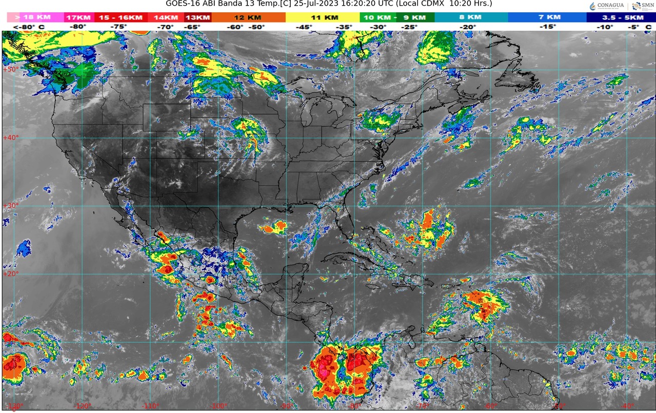 CDMX, 25 de julio del 2023.- Hoy martes, la onda tropical Núm. 16 recorrerá el occidente del territorio nacional, en interacción con la afluencia de humedad del Océano Pacífico, ocasionarán lluvias puntuales intensas en Nayarit, Jalisco y Colima.