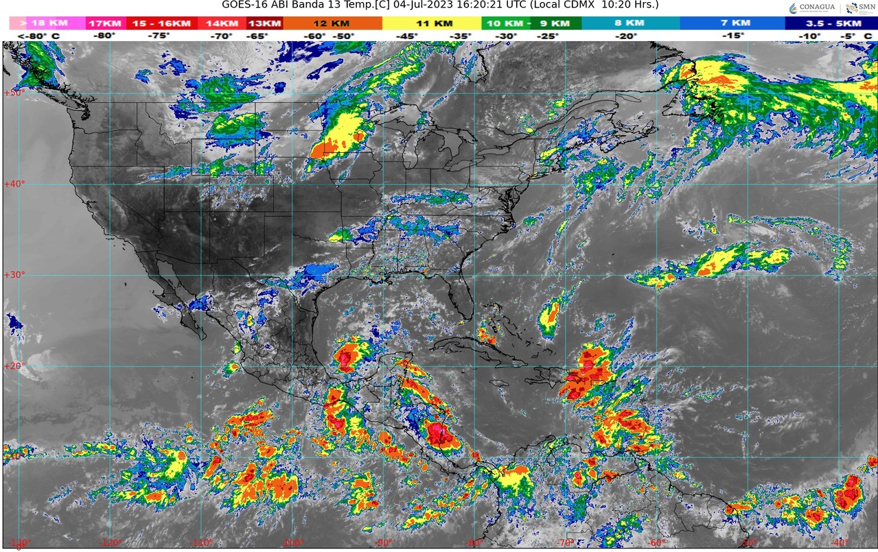 CDMX, 04 de julio del 2023.- Este día martes, un canal de baja presión en el sureste mexicano y el paso de la onda tropical Núm. 9 sobre el sur del territorio nacional, aunado al ingreso de humedad del Océano Pacífico, Golfo de México y Mar Caribe, producirán lluvias puntuales intensas en Oaxaca y Chiapas; así como lluvias fuertes a muy fuertes en el sur, sureste y oriente del país.
