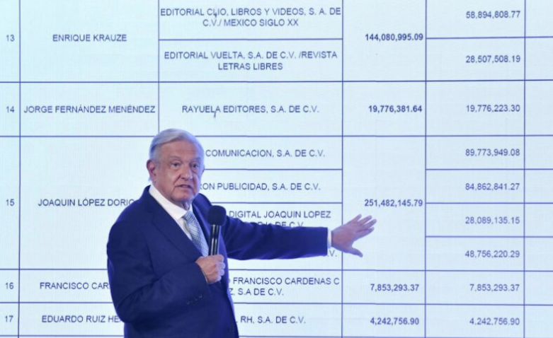 En la Conferencia Mañanera, el primer mandatario exhibió la lista de 36 periodistas tocados por el Gobierno de Peña Nieto y que entre 2013 y 2018 recibieron mil 81 millones de pesos.