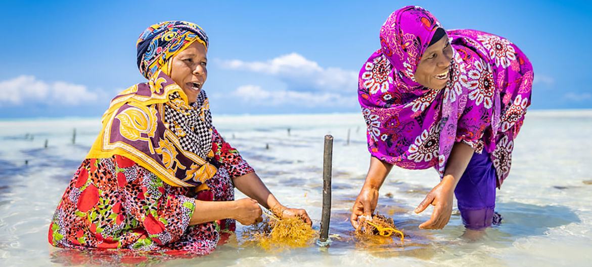 Estas mujeres cosechan algas en Tanzania como parte de un proyecto de agriculttura ecológica.