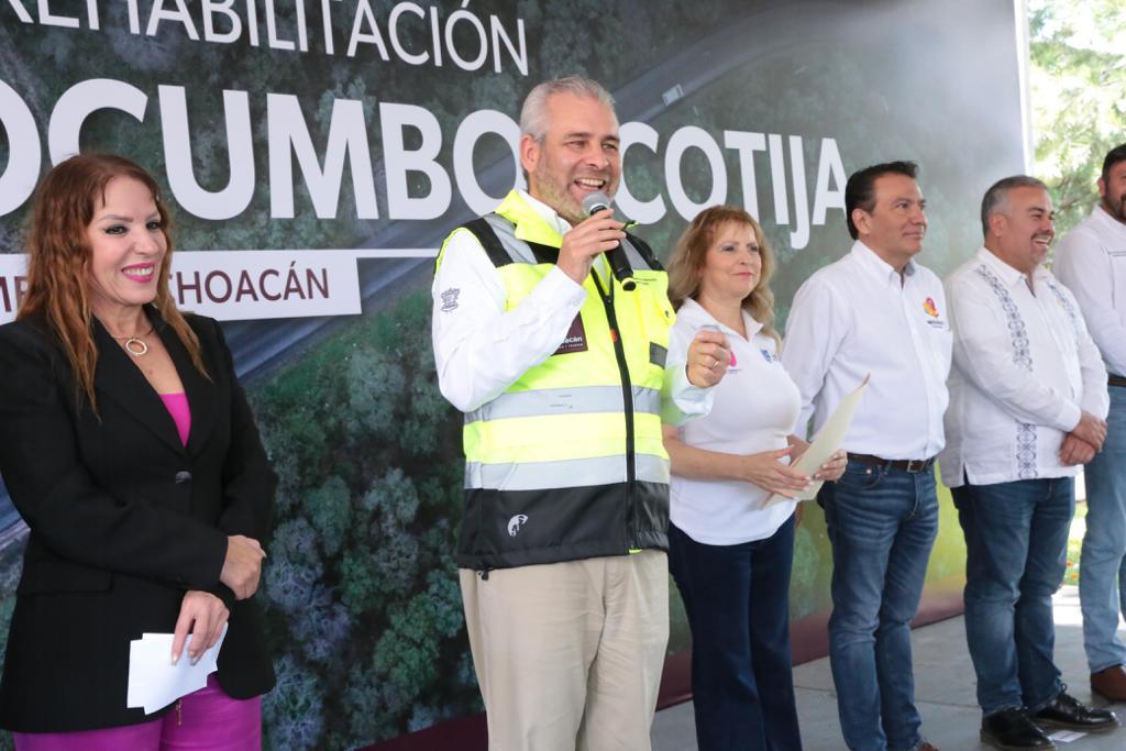 Puntualizó que en la región ya existen diversas obras de mantenimiento de carreteras como “la que hoy iniciamos y que contará con mantenimiento, dejando a las y los michoacanos, carreteras en perfectas condiciones”.