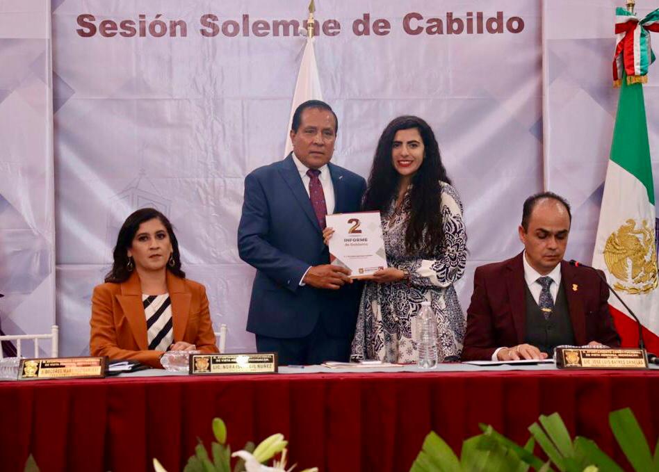 Al acudir en representación del mandatario Alfredo Ramírez Bedolla, al Segundo Informe de Gobierno del alcalde J. Dolores Martínez Garibay, resaltó el Fondo de Aportaciones Estatales para la Infraestructura de los Servicios Públicos Municipales (Faeispum), con el que se logró realizar obras de infraestructura social, como la pavimentación de 109 mil metros cuadrados de vialidades, la construcción de una red de agua potable de 41 mil metros lineales, y la instalación de 6 mil 200 metros de drenaje sanitario.