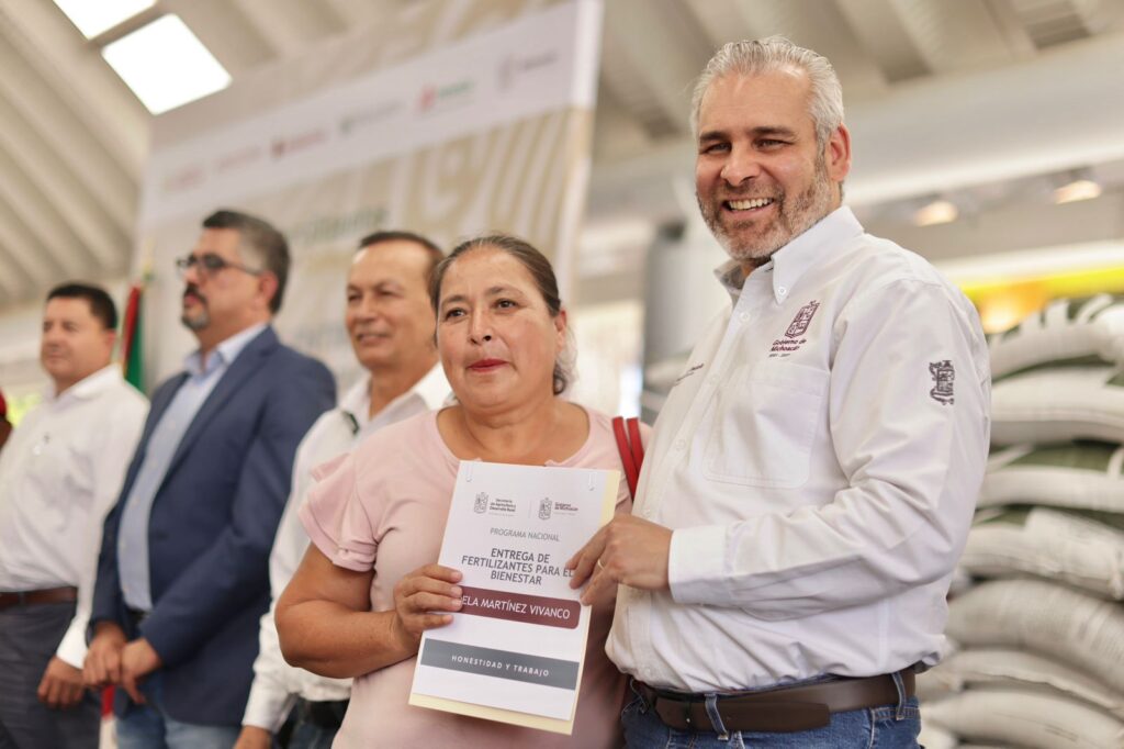 Durante la entrega de fertilizantes gratuitos en Tacámbaro, el gobernador Alfredo Ramírez Bedolla destacó que con éxito se repartieron los insumos de calidad a pequeños productores de granos registrados en el padrón nacional.