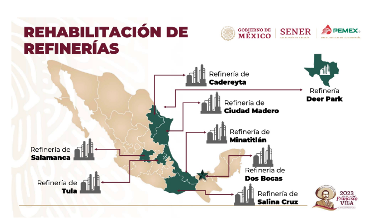 En conferencia de prensa matutina, la secretaria de Energía, Rocío Nahle García, detalló los logros de la implementación del programa emergente de rehabilitación de las refinerías de Ciudad Madero, Tamaulipas; Cadereyta, Nuevo León; Salamanca, Guanajuato; Tula, Hidalgo; Minatitlán, Veracruz y Salina Cruz, Oaxaca.