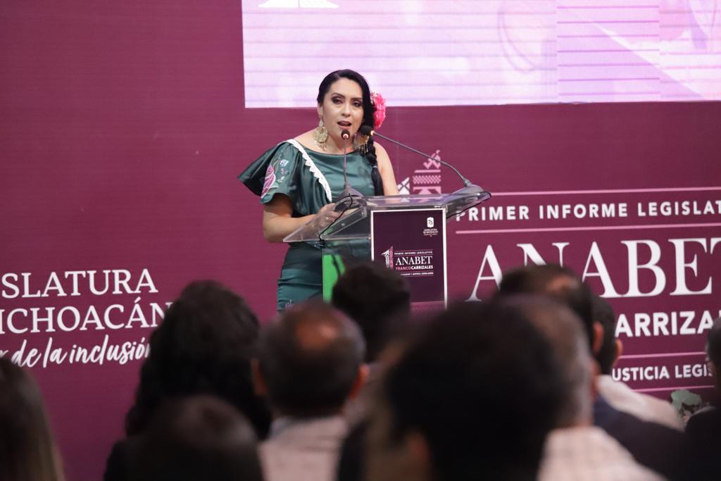 Morelia, Michoacán, 22 de septiembre de 2022.- (574). Al presentar su Primer Informe Legislativo, la diputada local Anabet Franco Carrizales, llama a sus compañeras y compañeros diputados aprobar la reforma integral en materia del delito feminicidio.