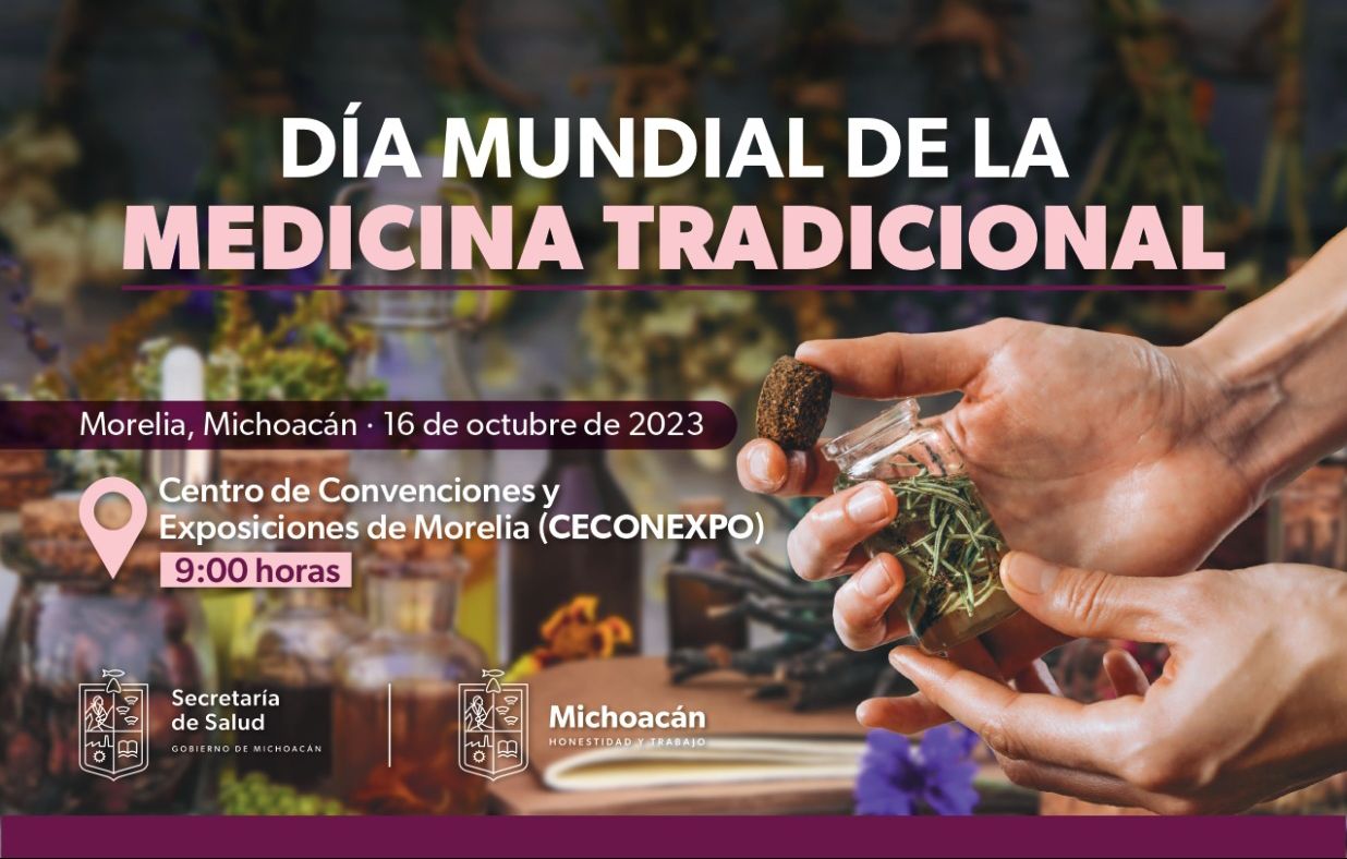 Morelia, Michoacán, 5 de octubre de 2023.- La Secretaría de Salud de Michoacán (SSM) conmemorará el Día Mundial de la Medicina Tradicional con un ciclo de conferencias, talleres y una exposición de productos naturales el próximo lunes 16 de octubre en el Centro de Convenciones y Exposiciones de Morelia (Ceconexpo).