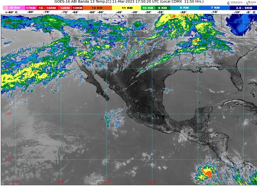 CDMX, 11 de marzo del 2023.- Para hoy sábado, el arrastre de humedad generado por la corriente en chorro polar sobre el noroeste del país, originará chubascos y rachas de viento con tolvaneras en Baja California. Por otra parte, una línea seca se extenderá sobre el norte de República Mexicana, interaccionará con la corriente en chorro subtropical, ocasionando fuertes rachas de viento y tolvaneras en esa región.