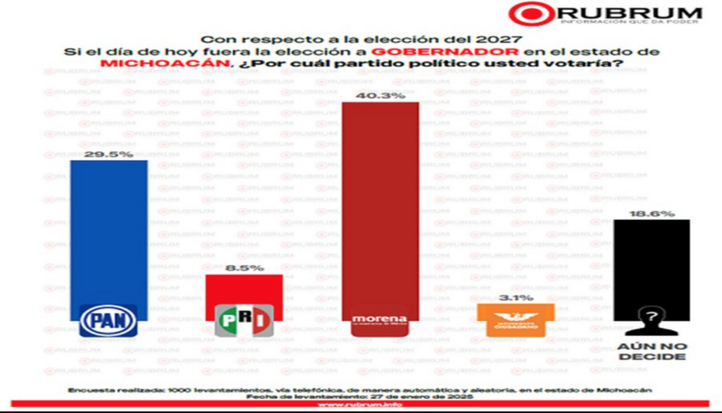 Yo no estaría tan confiado a pesar de ese 40.3% en las preferencias electorales a 28 meses de la elección de junio de 2027. Lo que una vez más, es evidente, es que RAÚL MORÓN ORÓZCO, a pesar de su desastrosa actuación como alcalde de Morelia, sigue siendo el perfil mejor posicionado al interior y al exterior de Morena, de manera que, si de veras se quiere asegurar el triunfo electoral, se debe de postular a RAÚL MORÓN y, aun así, quién sabe…