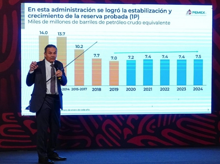 Durante la conferencia presidencial, Romero Oropeza dijo que en materia de reservas probadas, se ha logrado que, con las inversiones en la exploración , reponer e incrementar ligeramente las reservas probadas que se tenían al comenzar el sexenio, señaló que hubo una reorietnacion radical en las inversiones para la exploración pues si antes se realizaban en aguas profundas, actualmente ha sido exitoso las inversiones en aguas someras.