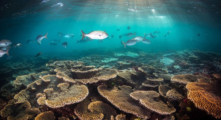 Con el 90% de las grandes especies marítimas de peces mermadas y el 50% de los arrecifes de coral destruidos, estamos extrayendo más del océano de lo que se puede reponer, pero el Secretario General cree que “empiezan a soplar vientos de cambio”.