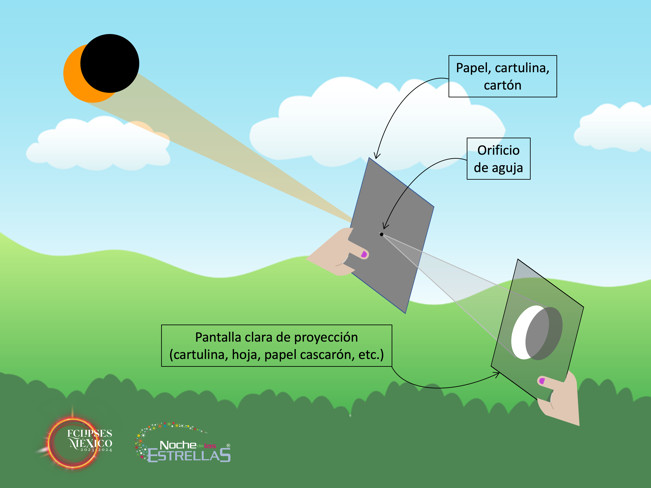 Desde la casa, trabajo, escuela o calle, se puede observar el eclipse de forma segura con lentes para eclipse certificados o usando un cartón con un agujero pequeño para proyectar el eclipse indirectamente sobre una superficie blanca. No se debe observar el sol a simple vista, ni a través de obsidianas u otros cristales naturales, vidrios ahumados o de colores, negativos, radiografías, cintas o discos magnéticos, superficies de agua, reflejos en espejos, o lentes para sol convencionales. Si se observa de forma segura, todas las personas pueden disfrutar el eclipse sin importar su condición, edad o estado de salud.