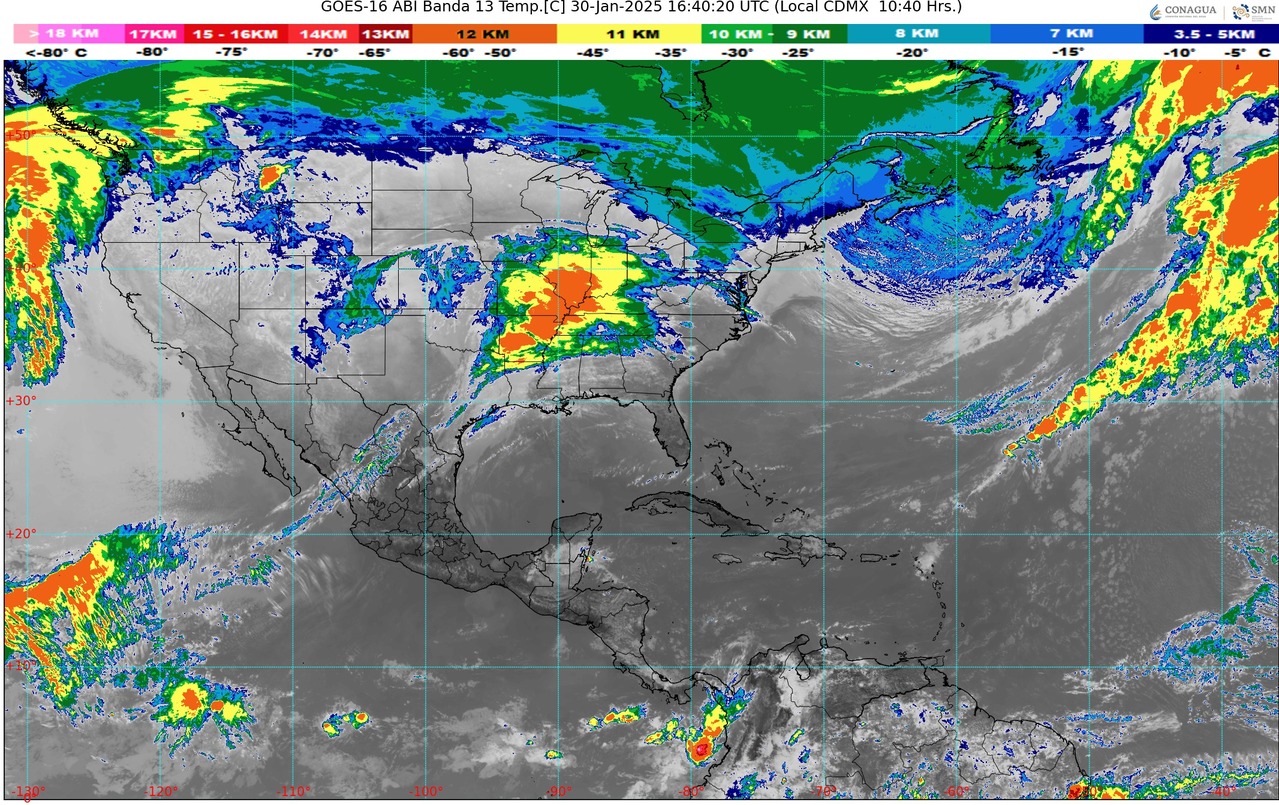 CDMX, 30 de enero del 2025.- Para este día jueves, el frente frío No. 25 recorrerá el noreste del país en interacción con un canal de baja presión sobre el oriente de México, ocasionarán lluvias e intervalos de chubascos en dichas regiones.