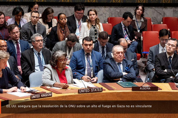 26 de marzo del 2024.- La abstención de Estados Unidos permitió el lunes que, por primera vez, el Consejo de Seguridad de la ONU exigiera un alto al fuego inmediato en Gaza tras cuatro intentos fallidos. Minutos después, sin embargo, desde Washington afirmaron que esa decisión “no es vinculante”, una idea que han repetido las autoridades estadounidenses desde entonces. El resto de países miembros, sin embargo, contradice esta interpretación y el secretario general de la ONU ha urgido a implementar la medida.