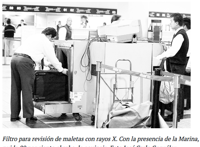 Desde su llegada, la Semar descubrió que en los filtros de pasajeros y equipaje en mano, los equipos de rayos X mostraban “imágenes congeladas, no se veía nada, se estaba dejando pasar todo”, afirmó Velázquez Tiscareño.