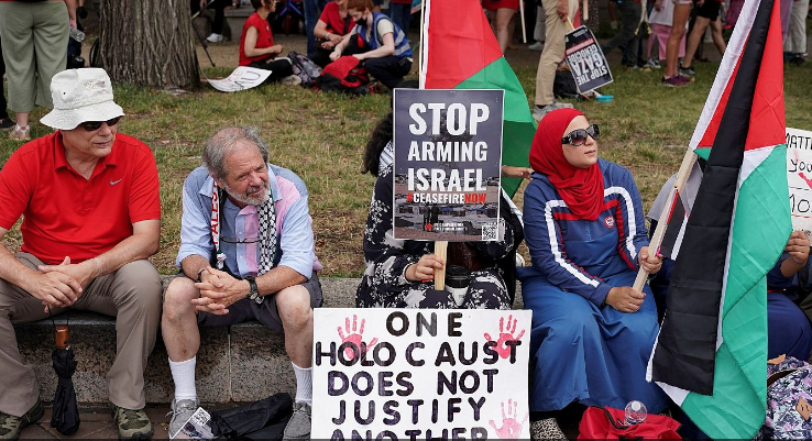 Cerca del Capitolio, los activistas han colocado cerca de 30 ataúdes de cartón de tamaño humano envueltos en banderas palestinas en memoria de los asesinados por los ataques de Israel en Gaza. La aglomeración ha provocado el cierre del tránsito en varias vías cercanas al edificio.