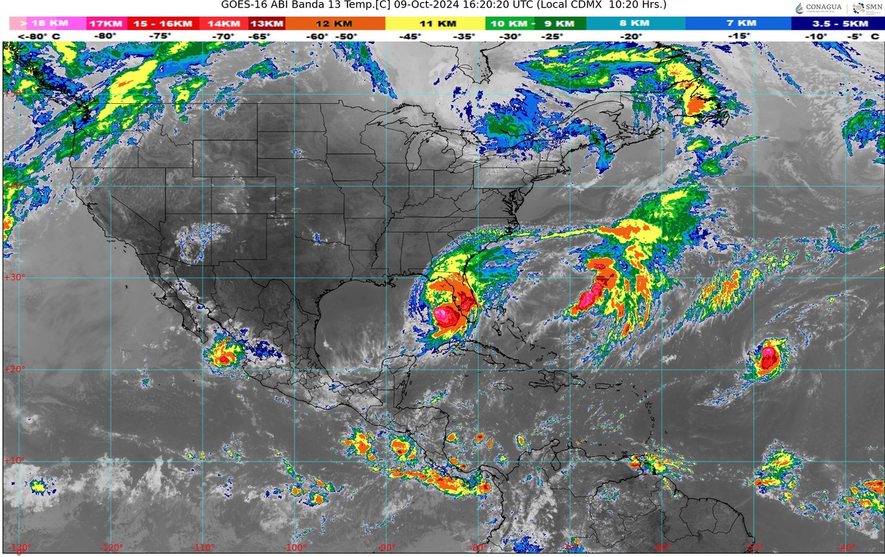 CDMX, 09 de octubre del 2024.- Para hoy miércoles, el huracán Milton mantendrá su desplazamiento sobre el golfo de México, aproximándose a las costas de Florida, EUA. Su amplia circulación generará viento con rachas de 60 a 80 km/h y oleaje de 2 a 4 metros de altura en costas de Yucatán y Quintana Roo; vientos de 40 a 60 km/h y oleaje de 1 a 2 metros de altura en costas de Campeche; así como viento de componente norte con rachas de 40 a 60 km/h en el istmo y golfo de Tehuantepec (Oaxaca y Chiapas), y de igual intensidad con oleaje de 1 a 2 metros de altura en costas de Veracruz (sur) y Tabasco. Dichas condiciones de viento y oleaje disminuirán en el transcurso del día.