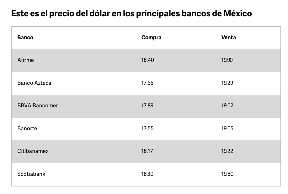 Recuerda que la cotización del tipo de cambio de dólar a pesos mexicanos recibe actualizaciones a lo largo del día de acuerdo con los acontecimientos internacionales que sucedan en México y Estados Unidos. Sin embargo, el tipo de cambio FIX publicado por el Banco de México (Banxico) para hoy miércoles 2 de julio fue de 18.8332 pesos por cada divisa verde.