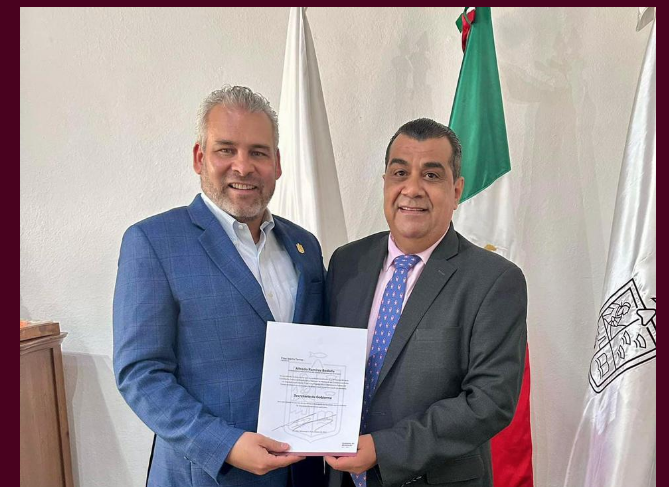 Morelia, Michoacán, 4 de octubre de 2023.- El mandatario Alfredo Ramírez Bedolla, entregó el nombramiento como nuevo secretario de Gobierno a Elías Ibarra Torres.