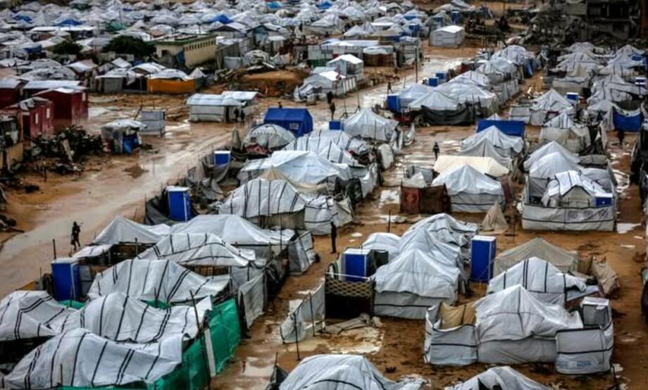 En tanto, la población palestina desplazada que vive en frágiles casas de campaña intenta sobrevivir al frío y los fuertes vientos que impactan el territorio.