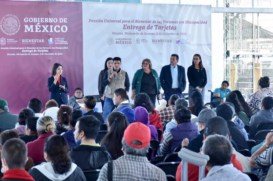En el marco de la Entrega de Tarjetas de la Pensión Universal para el Bienestar de las Personas con Discapacidad, la legisladora destacó que, en el Presupuesto para el Ejercicio Fiscal 2023, ya se trabaja a marchas forzadas para que este tipo de programas y de becas continúen en favor de la población en general y, sobre todo, de quienes tienen alguna discapacidad.