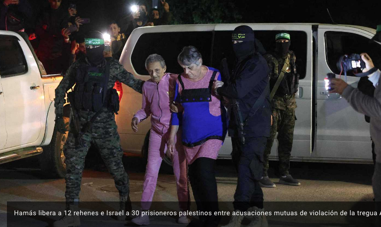 “De acuerdo con información proporcionada por la Cruz Roja, doce rehenes -incluyendo diez israelíes y dos extranjeros- están de camino a territorio israelí”, ha asegurado la portavocía militar israelí, que ha asegurado más tarde que los rehenes habían llegado a Israel a través de Egito.
