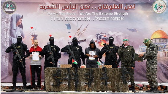 Rodeados de decenas de milicianos armados de Hamás, los israelíes han subido a sendos escenarios obligados por los terroristas, donde hicieron unas declaraciones y saludaron al público. El grupo palestino les ha dado un documento de su liberación y han sido entregados a Cruz Roja. Ya han cruzado la frontera hacia territorio israelí para reunirse con sus familiares en el punto de recepción inicial en el sur de Israel.