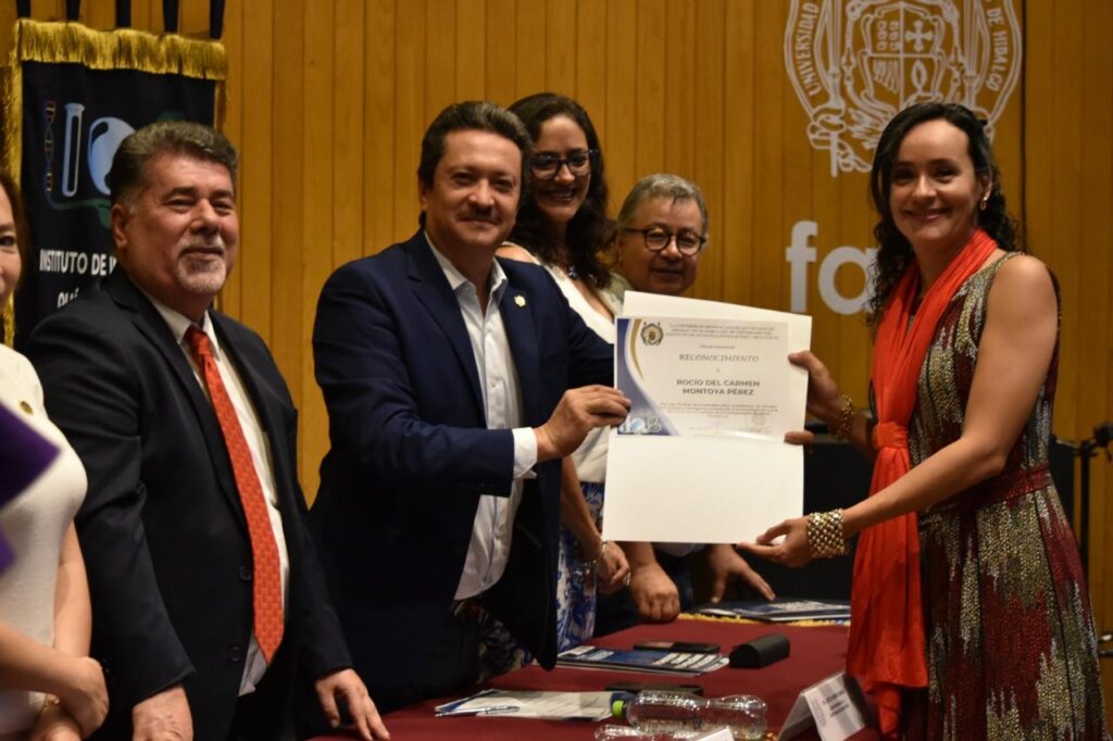 Acompañaron en el presídium la directora del Instituto de Ciencia, Tecnología e Innovación del Estado de Michoacán, Alejandra Ochoa Zarzosa; Andrea Araceli Farias Olvera, coordinadora General del Programa Institucional de Licenciaturas de la modalidad Multi-DES; Daniel Godínez Hernández, secretario académico del Instituto de Investigaciones Químico Biológicas y Horacio Cano Camacho, jefe del Departamento de Comunicación de la Ciencia de la Coordinación de la Investigación Científica.