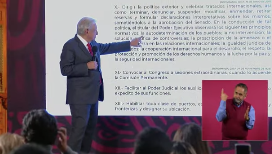 López Obrador subrayó: “No enojarnos, tener muy presente las cosas, defender nuestra independencia, nuestra soberanía y no someternos frente a ninguna potencia extranjera, no es nada más el caso de Estados Unidos. Ninguna hegemonía, ningún país extranjero puede imponernos a nosotros las políticas que corresponden a los mexicanos decidir, como este caso, es una burda actitud intervencionista”.