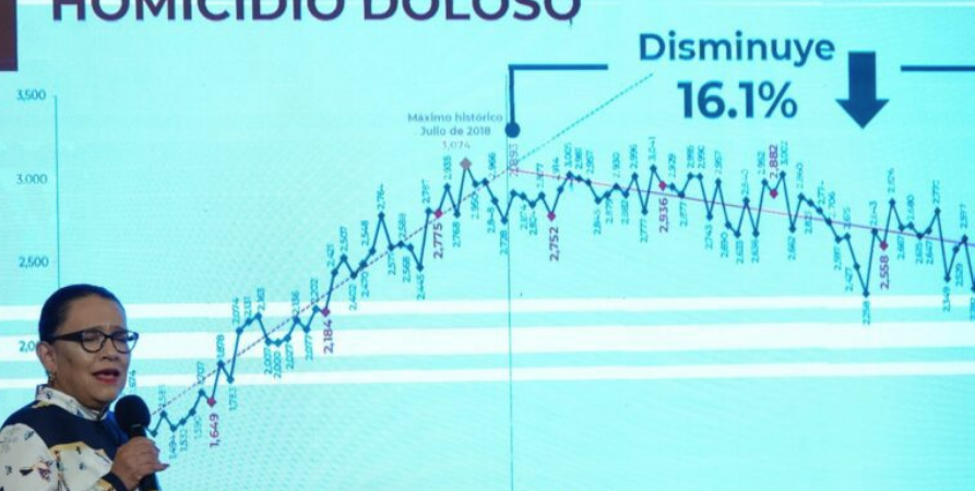 En la Conferencia Mañanera, Rosa Icela precisó que se trata del mes de abril más bajo en los últimos seis años, con un total de dos mil 428 homicidios.