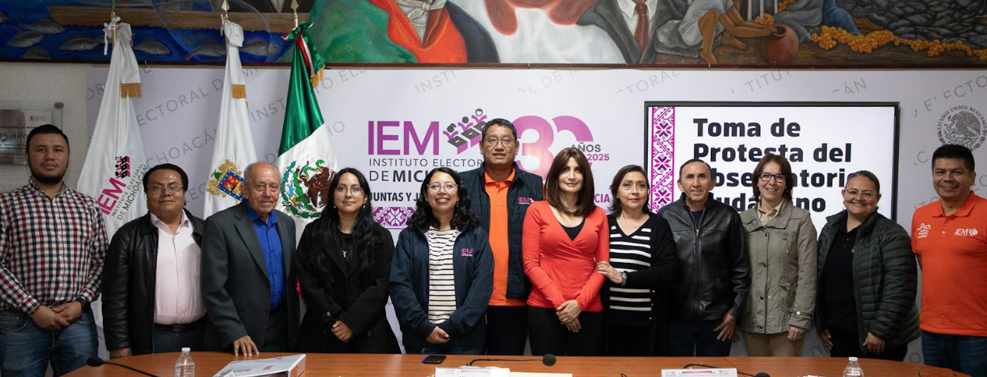 Morelia, Michoacán, jueves 25 de junio de 2025. En cumplimiento de la normativa electoral y con el objetivo de fortalecer la participación de la ciudadanía en los asuntos públicos, el Instituto Electoral de Michoacán (IEM) llevó a cabo la toma de protesta de las y los integrantes de su Observatorio Ciudadano