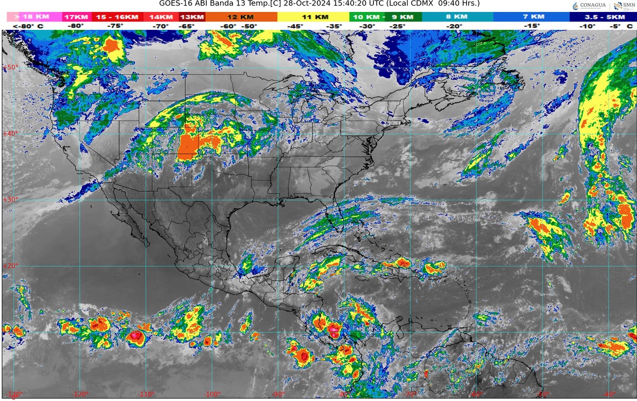 CDMX, 28 de octubre del 2024.- Para este día lunes, la onda tropical No. 28 se desplazará sobre el sur y occidente del país, continuará interaccionando con una vaguada en niveles altos de la atmósfera extendida sobre el noreste, centro y sur de México, ocasionando chubascos y lluvias fuertes a muy fuertes con descargas eléctricas en las regiones mencionadas, además de viento de componente norte con rachas fuertes a muy fuertes en el istmo y golfo de Tehuantepec.