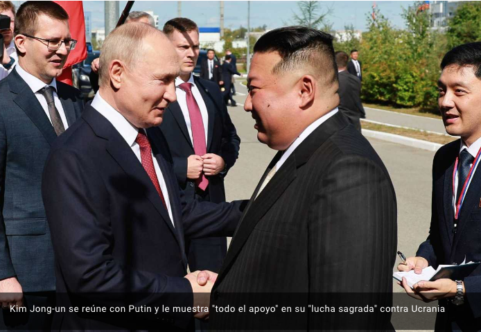 13 de septiembre del 2023.- El líder de Corea del Norte, Kim Jong-un, ha mostrado todo su apoyo al presidente ruso, Vladímir Putin, y a su país en la “lucha sagrada” contra Ucrania, y se ha mostrado convencido de que Rusia vencerá, en el encuentro que ambos han mantenido este miércoles.