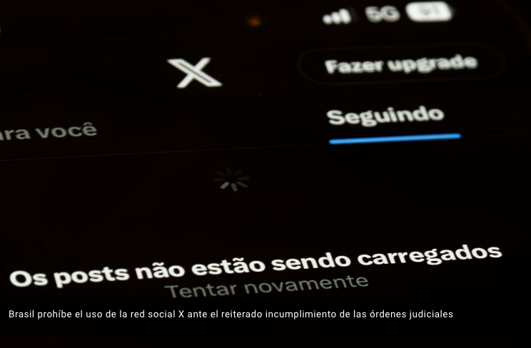 31 de agosto del 2024.- La red social X ha sido suspendida en Brasil después de que las principales operadoras acataran la decisión de un magistrado de la Corte Suprema de Justicia ante el incumplimiento de “órdenes judiciales” impuestas a la plataforma.